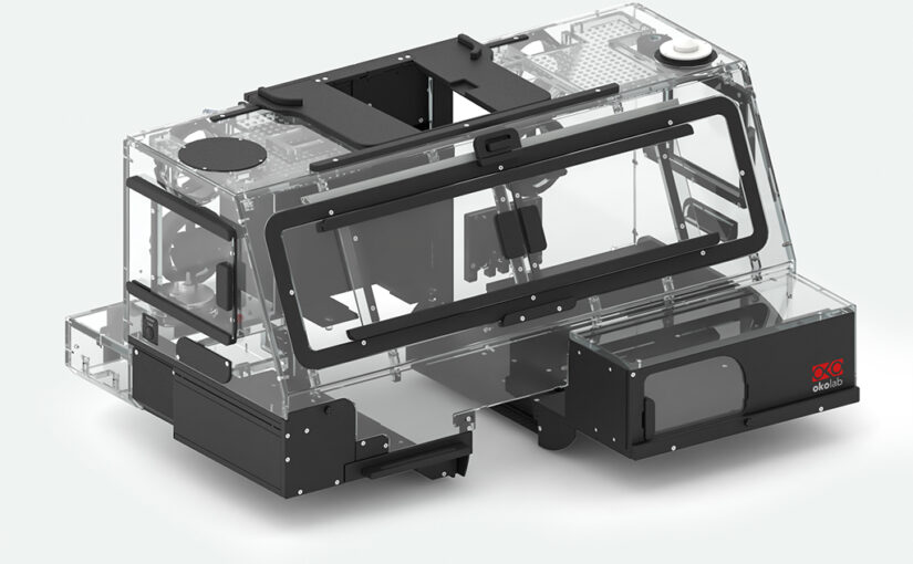 Transparent microscope incubator for DMi8 to control the temperature in a large volume around the microscope.
